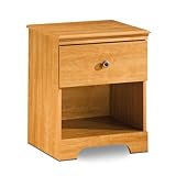 3575062 South Shore Night Table, Billy Collection, Country, Florence Maple. This fashionably functional night table is well adapted to today's needs with easy access storage solution, chic metal knobs in a stainless steel finish with black inserts, and decorative kickplate.